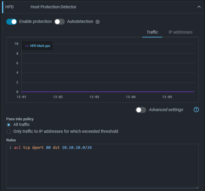 Now, HPD rules do not require thresholds to be specified. In this case, traffic matching the rule will be marked by the detector regardless of its rate.