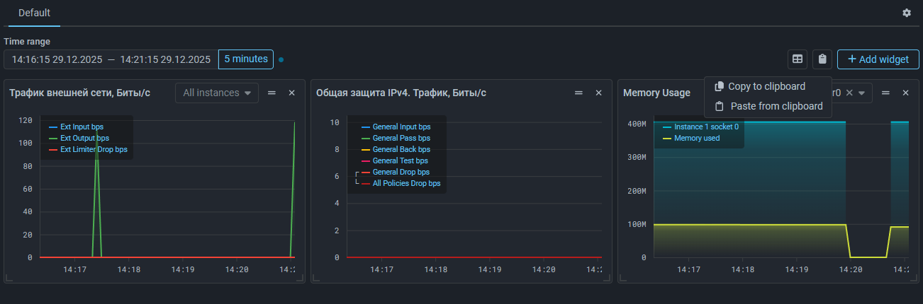Now on the “Overview” page you can copy the set and layout of widgets to the clipboard, as well as add a preset from the clipboard. This allows you to share the dashboard configuration with other users.