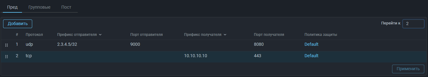 DNAT. Добавлена функция DNAT в Общую защиту IPv4.