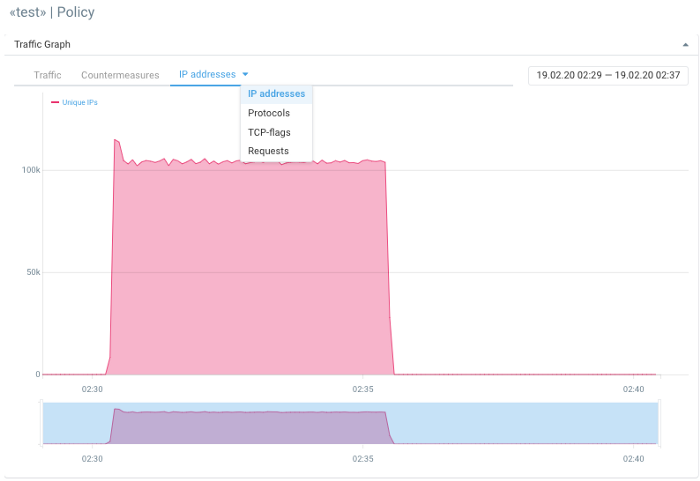 UX. Добавлен график количества уникальных IP-адресов во входящем потоке политики.