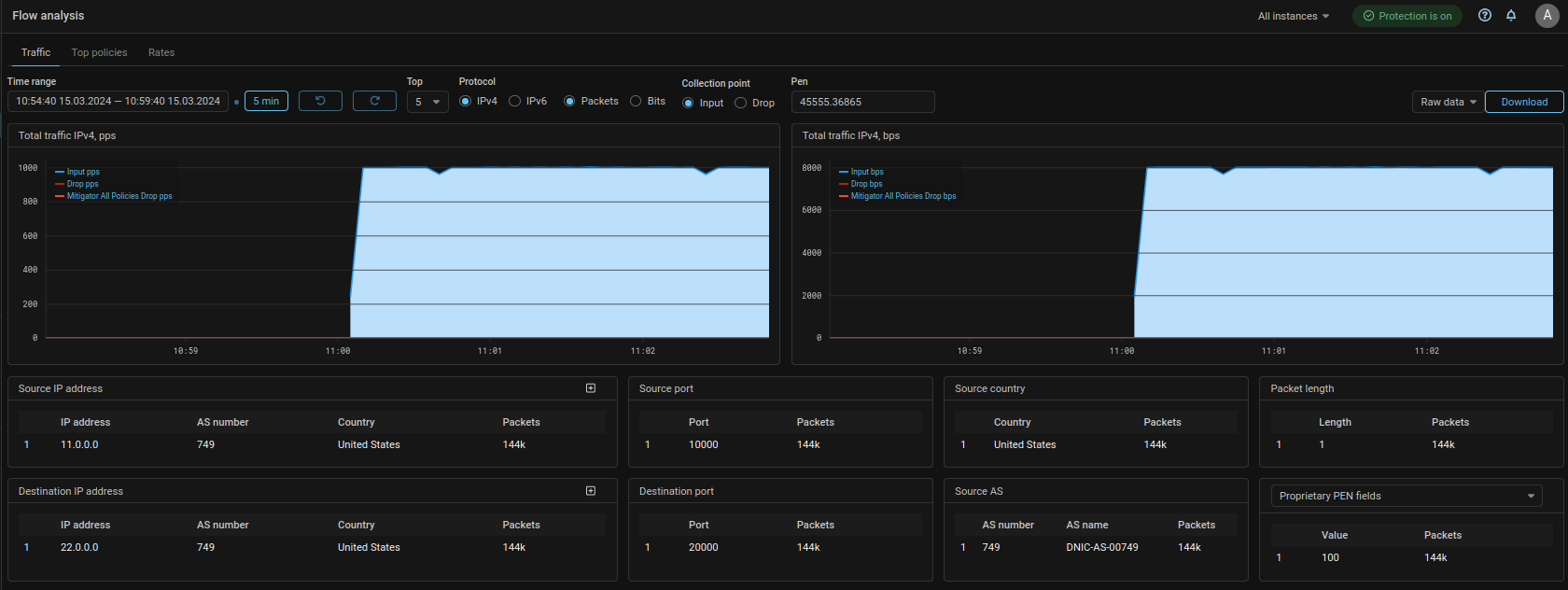 Now on the Flow Analysis page and on the Flow Analysis tab in the protection policy you can get statistics on the top values of the PEN field.