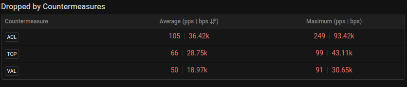 lacp_oper_key: 1000Incidents. Added values for average and maximum traffic dropped by countermeasures.