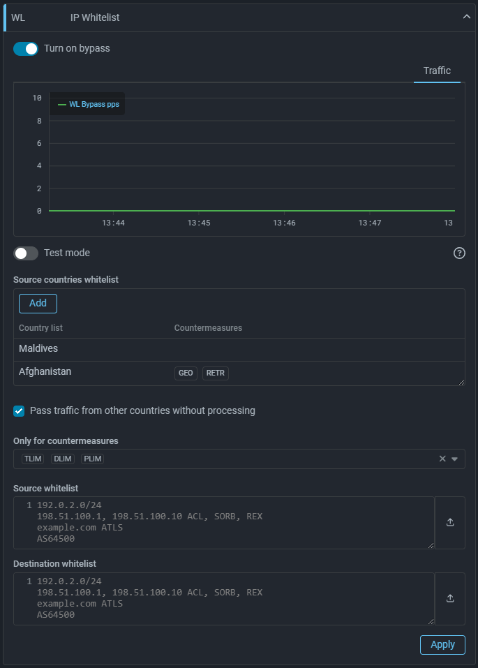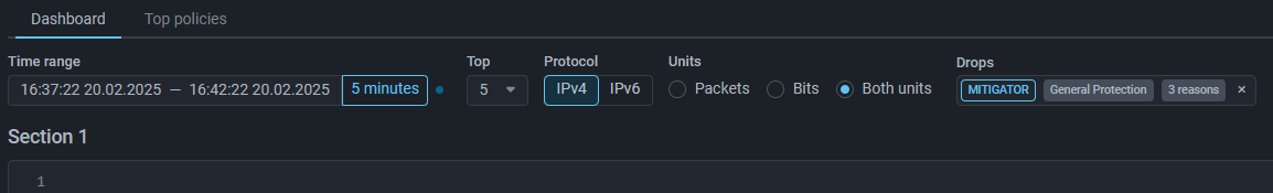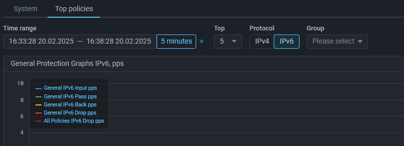 The buttons for selecting the IP protocol version have been brought to the same appearance as on the “Top Policies” tab of the “Dashboard” page. Headers have been added for groups of controls.