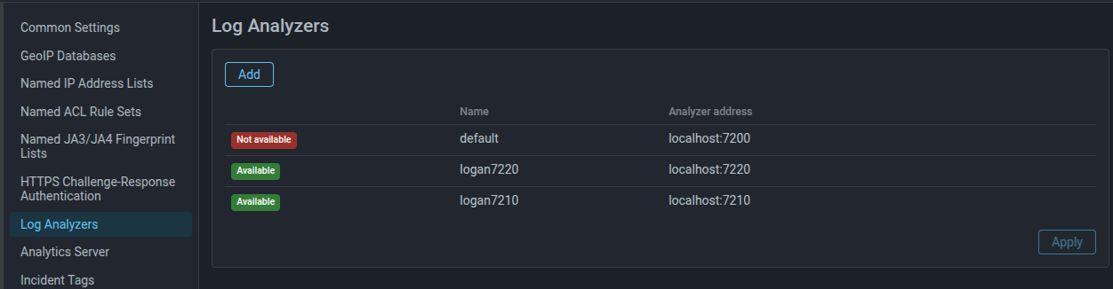 Now MITIGATOR can work with several LOGANs simultaneously. LOGAN settings have been moved to a separate item “Log Analyzers” in the settings.