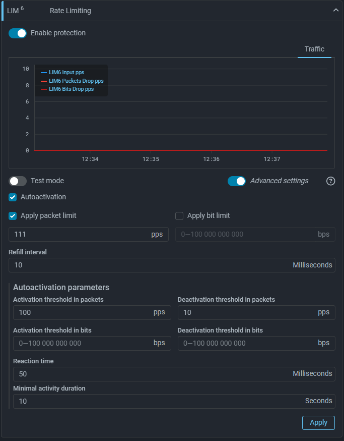 To solve the problem of setting thresholds that do not affect the passage of legitimate traffic, a mechanism for threshold auto-tuning in protection policy countermeasures has been added.