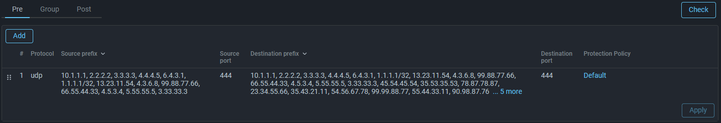 Now the Source Prefix and Destination Prefix fields in the routing rule display only prefixes that fit in 200 characters. To expand the full list, click on the spoiler in a specific rule or on the expand icon for all rules in the rules table header. Searching the page via Ctrl+F works even for hidden prefixes.