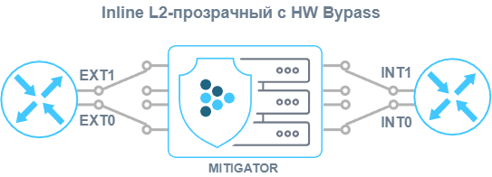 - Схему Inline L2-прозрачный с аппаратным bypass.