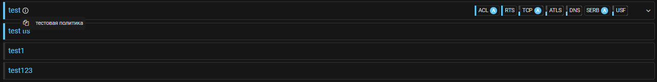 Поля ввода для указания списков значений применяются в системе повсеместно и могут содержать правила, регулярные выражения, префиксы или доменные имена. При работе со списками больших размеров удобно пользоваться горячими клавишами. Чтобы сочетания клавиш сработали требуется, чтобы поле ввода списка значений находилось в фокусе, для чего нужно нажать на него левой кнопкой мыши.