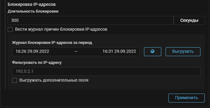 Теперь если IP-адрес был добавлен в список блокировки анализатором логов,