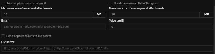 Теперь результаты захвата пакетов могут быть отправлены на ftp, sftp, http-сервер. Для автоматического режима захвата адреса файловых серверов указываются в карточке «Захват пакетов».
