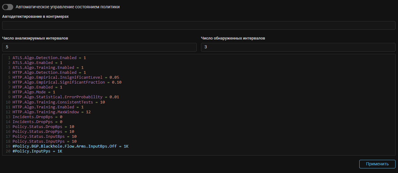 Теперь можно задать пороги автодетектирования для контрмер вида