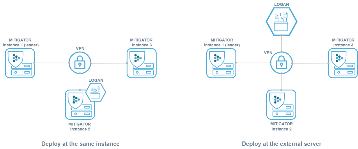 Instances of the MITIGATOR interact via Wireguard, a virtual network is created between them. In order for Logan to interact with other MITIGATOR instances, you need to configure a VPN, as well as for all instances within the cluster.