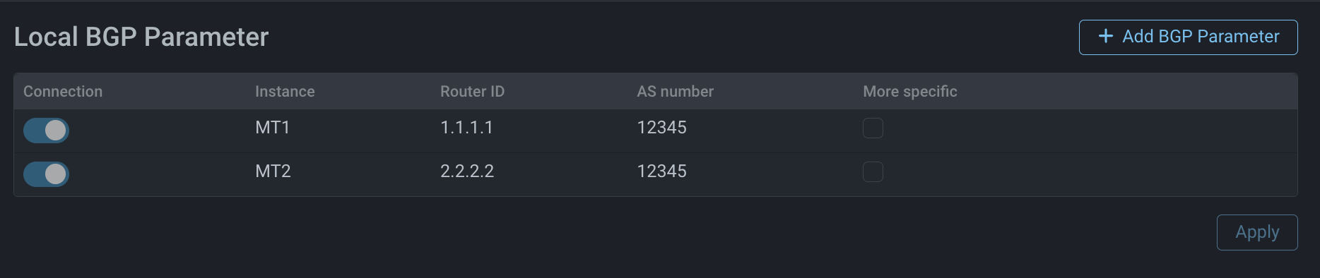 3.1. Specify the network device parameters in the BGP neighbour settings.