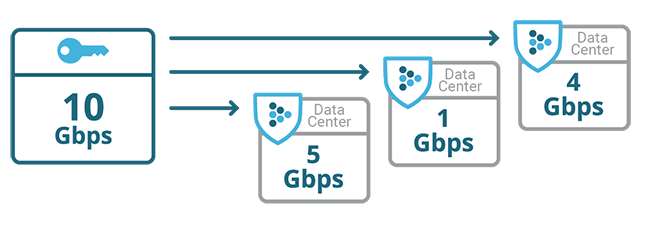 The license limits the rate of the traffic entering the system. The license limiter accounts both attack traffic and legitimate traffic. The minimum licensed bandwidth available for purchase is 100 Mbps. The minimum licensed bandwidth assignment step to a device is 50 Mbps.