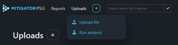 The service allows to perform an express analysis by IP address, for this you need to enter the address value in the *“Express report by IP address” field and click on the icon with a check mark. After that, a page with a report by IP address will open. Express analysis can be launched from any interface page.