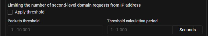 When the countermeasure mechanism detects that the threshold has been exceeded, all DNS requests for the given domain name from this IP address are dropped. DNS requests with other second-level domain names continue to go through.