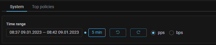 Now “System” and “Top policies” tabs of the “Dashboard” page have buttons to