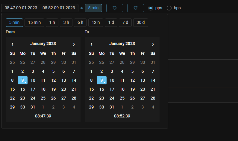 UX. Now the calendar and the list of predefined intervals are summoned not only by clicking on the time range filter field, but also by clicking on the icon of the current interval.