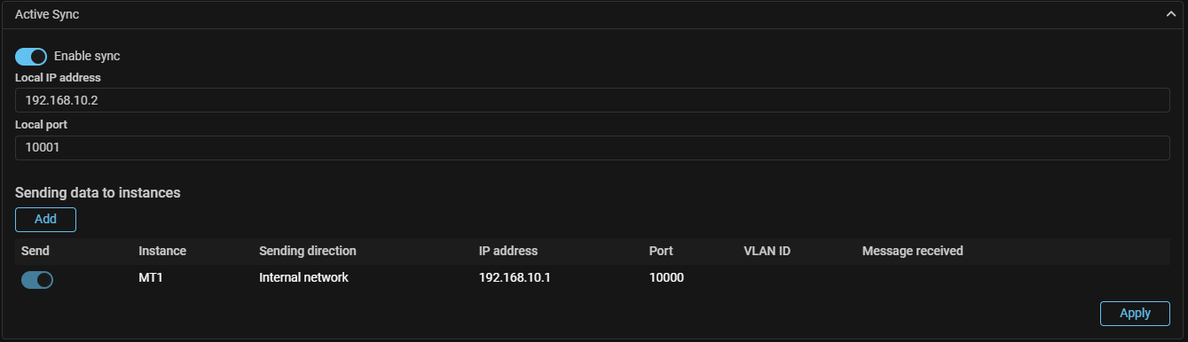 This type of synchronization differs from active-standby synchronization in terms of requirements for the implementation scheme, system resources and network load. However, both synchronizations can operate simultaneously and independently.