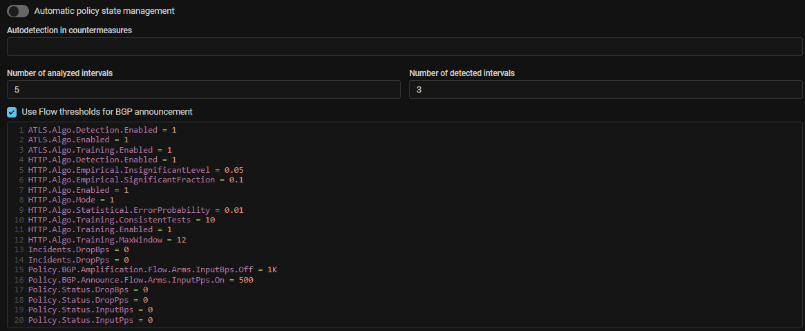 Detect. Added disabling of autodetection thresholds to control BGP advertising based on collector data.