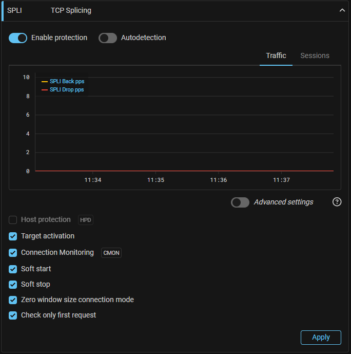 Now SPLI, similar to TCP, can activate protection only for destination IPs for which the rate of TCP segments with certain flags is exceeded.