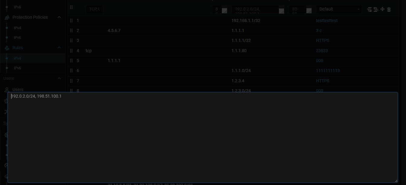 Now multi-line fields, for example in the routing rules or ACL countermeasure,