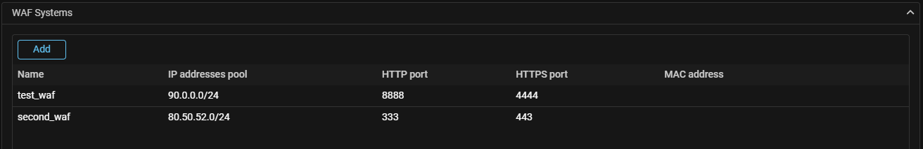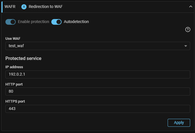 Traffic to the specified port numbers will be redirected by the WAFR element to the WAF ports specified in the system settings.