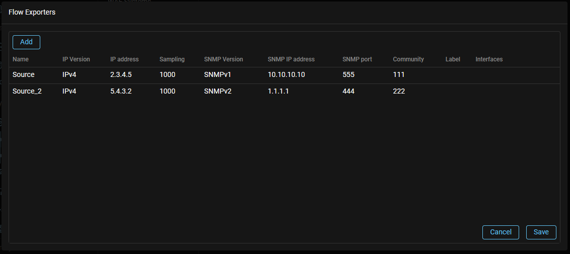 Now, when configuring the exporter, you can specify different IP addresses for receiving Flow from it and for receiving SNMP.