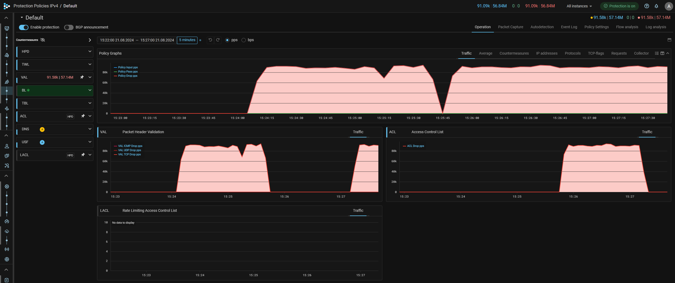 Enhanced functionality of countermeasures VAL, TBL, FRAG, SLOB, ATLS, DNS, SPLI, HCA