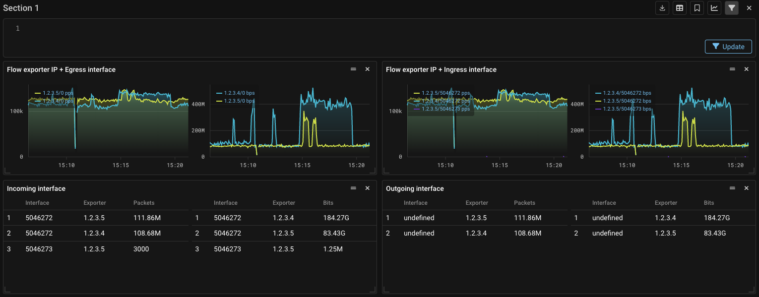 Also, the “Exporter” field has been added to the “Ingress interface” and “Egress interface” widgets.