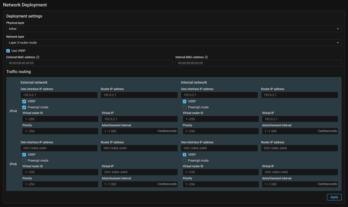 Deploy. Added VRRP support for Layer 3 router mode.