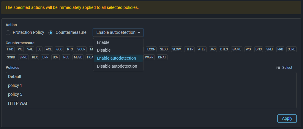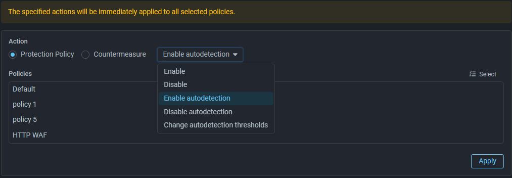 Policy. Added an action to remove auto-detection thresholds for bulk changes to protection policies.