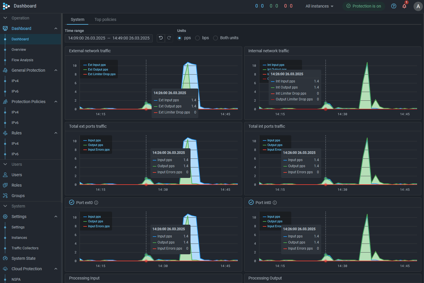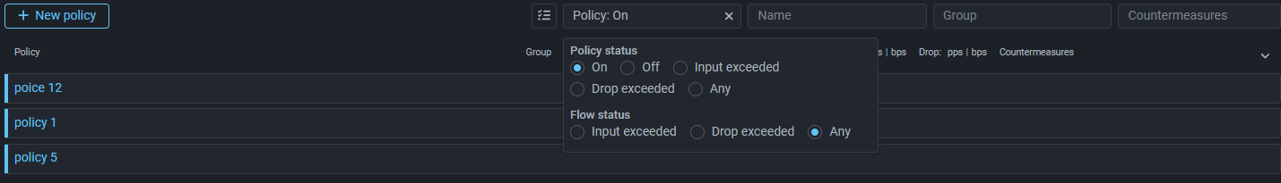 The buttons for selecting the IP protocol version have been brought to the same appearance as on the “Top Policies” tab of the “Dashboard” page. Headers have been added for groups of controls.