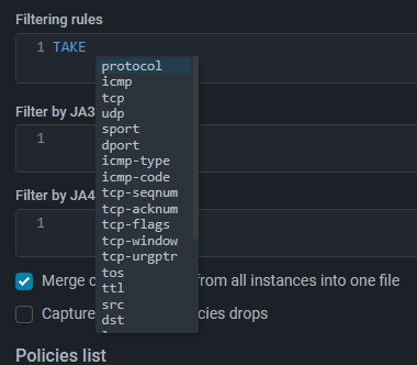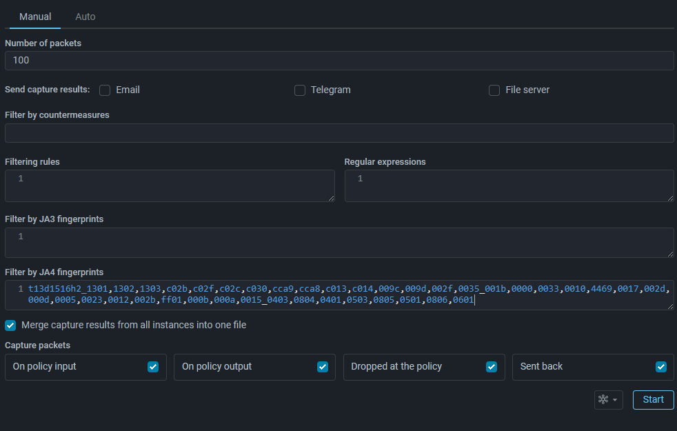 You can now set a filter by JA4 fingerprint in packet capture for general protection and policy.