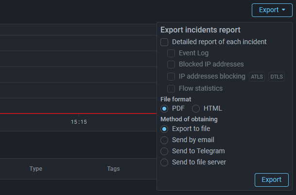 Now when you click the “Export” button to receive an incident report, you can select the method of receiving it:
