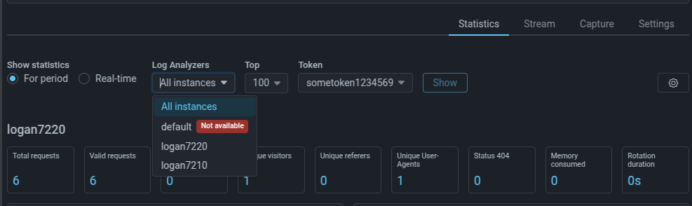 Now, on the Statistics tab in Log Analysis, the first token from the list is automatically selected.