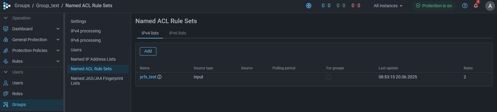 Now on the Group page, in the Named ACL Rule Sets submenu item, group users can create lists of rules and independently manage their contents.