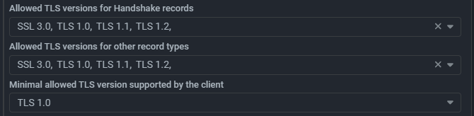 Now in the countermeasure you can specify a list of allowed versions separately for TLS Handshake and other TLS records.