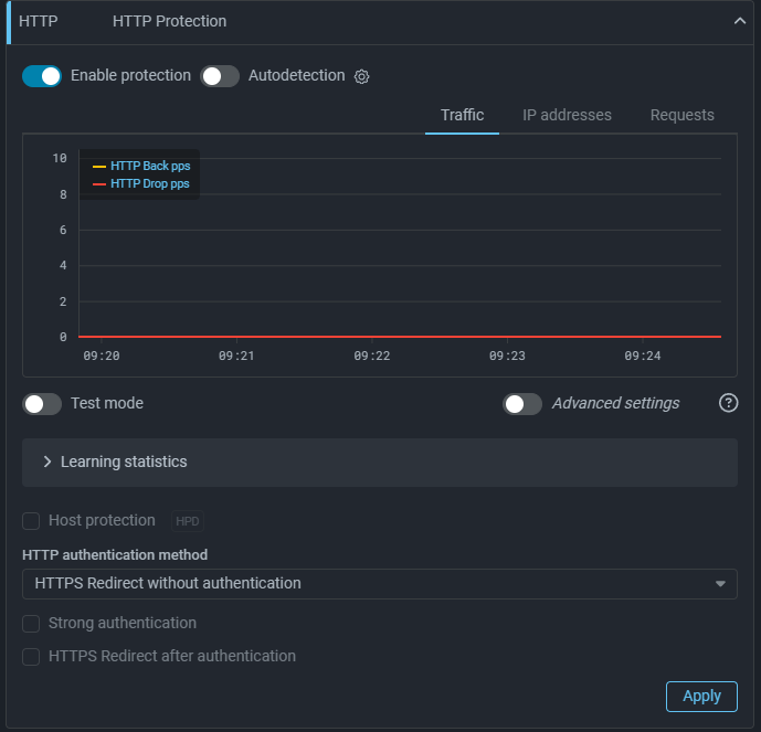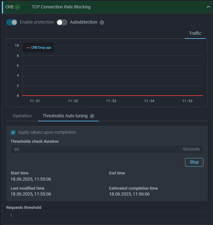 To solve the problem of setting thresholds that do not affect the passage of legitimate traffic, a mechanism for threshold auto-tuning in protection policy countermeasures has been added.