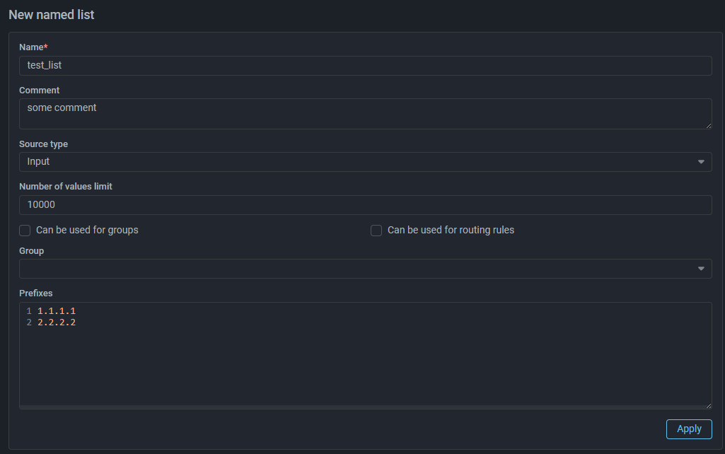 You can now set the maximum number of entries allowed in a named IP list. The limit is set for each list individually. For HTTP, File, and Mitigator Feeds source types, the list will not be updated if the limit is exceeded.
