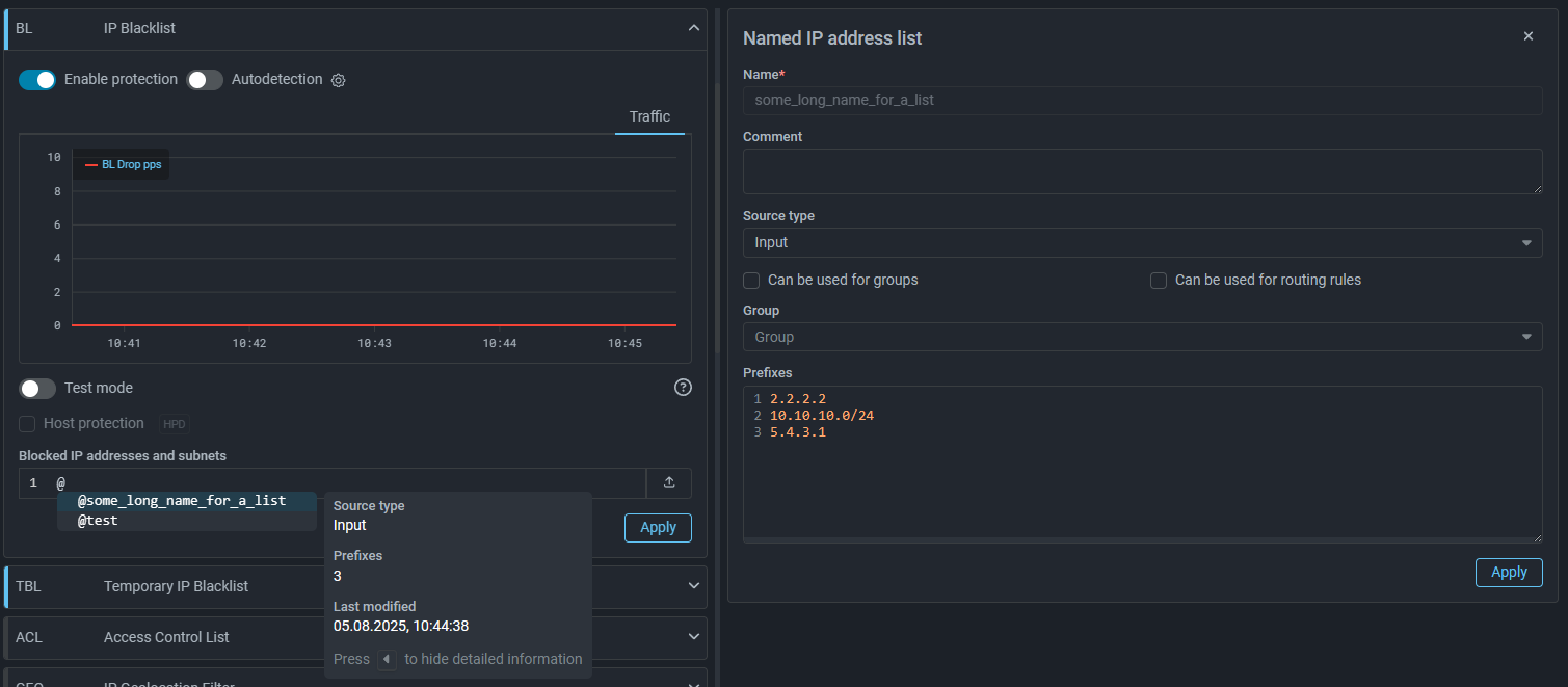 When specifying a named list in WL and BL countermeasures, an additional tooltip now appears with information about the number of records, source type, and update time. Pressing the right arrow key on the keyboard expands the full information on the named list.