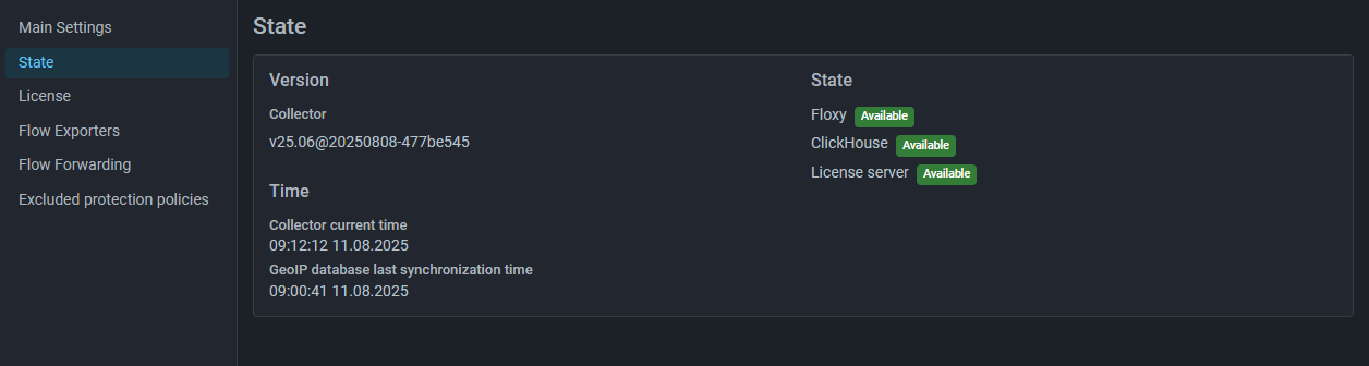 Collector. Added page with information about Collector status.