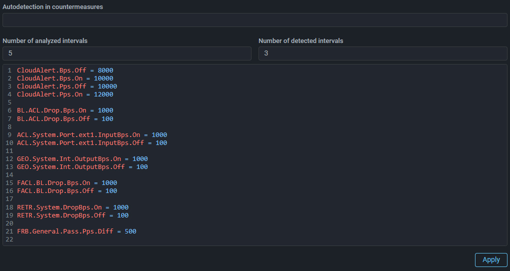 If you need to set a separate value for the number of analyzed intervals for incident registration, use the following thresholds: