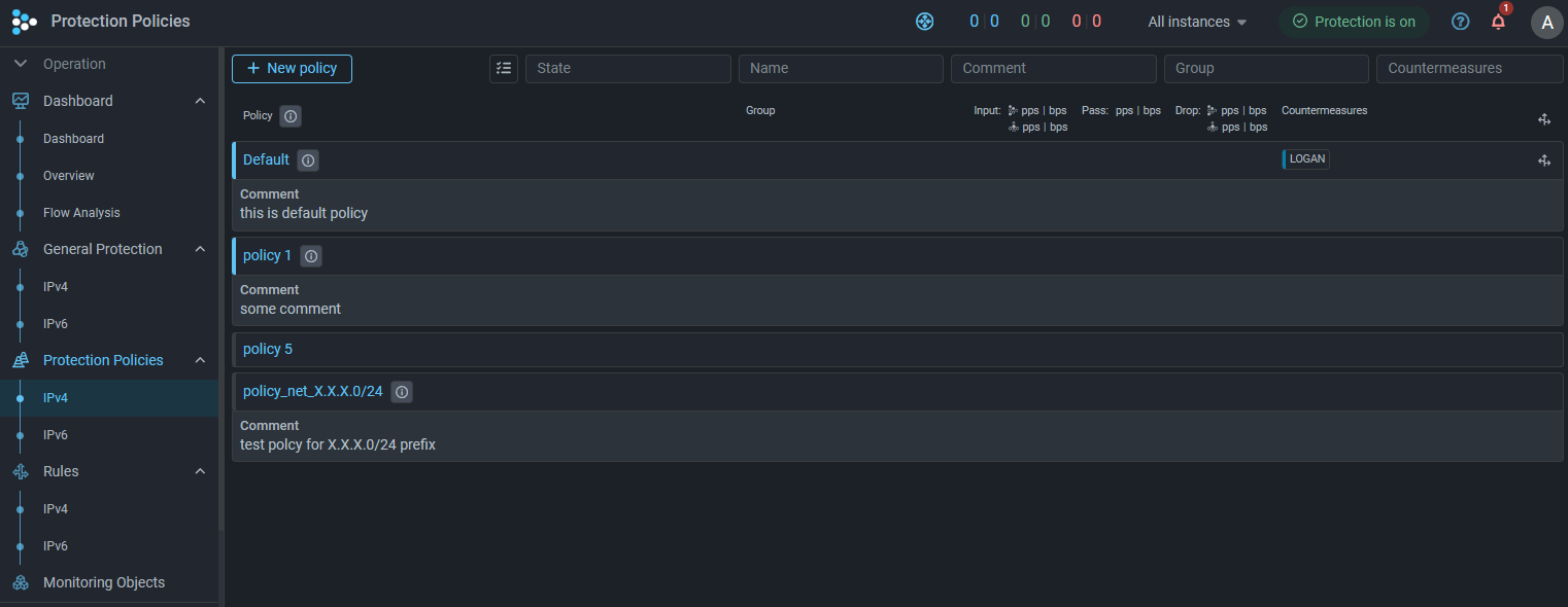 Now, on the policy list page, the comment for a protection policy is displayed below the row, similar to routing rules. Clicking the icon in the page header reveals comments in all policies where they are defined.