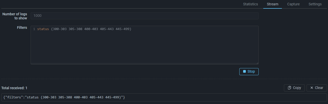 Now, status code ranges can be specified in Logan’s capture and streaming filters.