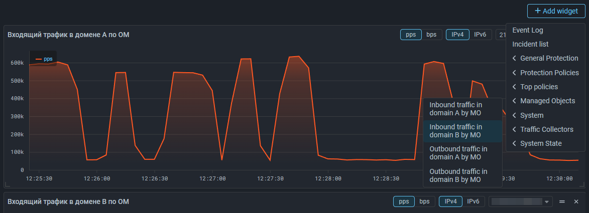 Previously, packets for which the countermeasure responded with NXDOMAIN and dropped were counted on the general drop graph. Now, dropped packets are counted on the «DNS Allowlist Drop» graph, and responses are counted on «DNS Back».
