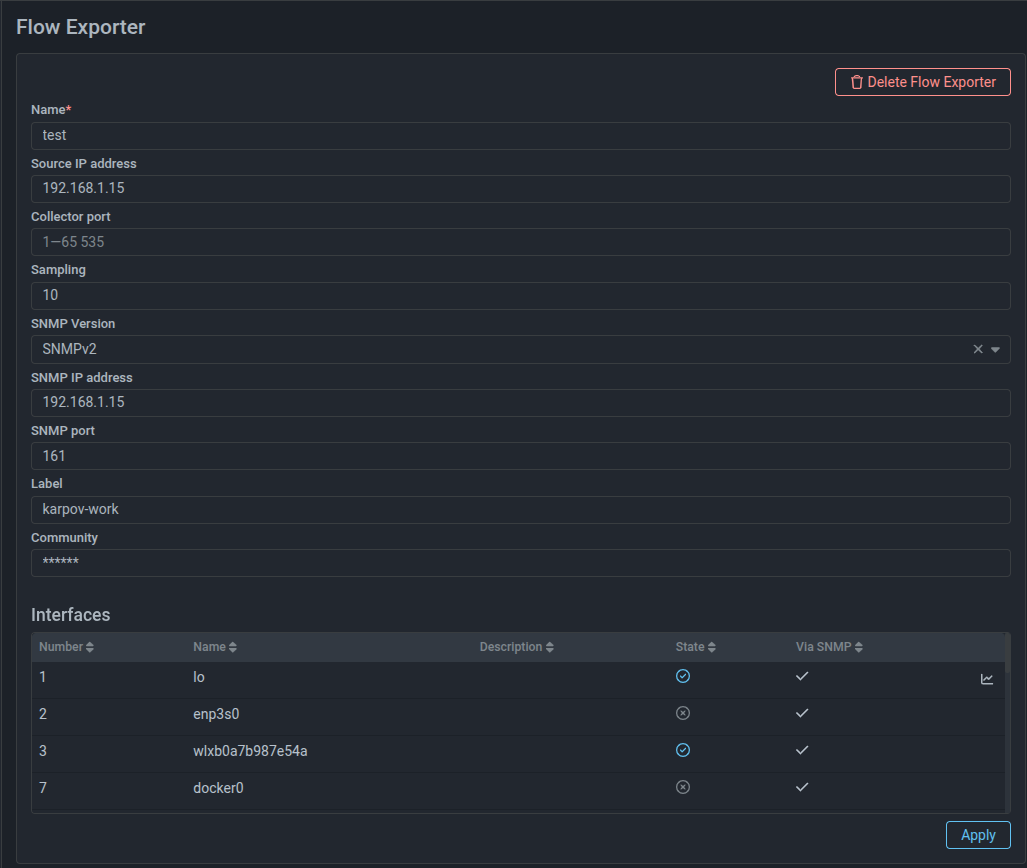 Collector. Traffic graphs for the exporter interface based on SNMP data have been added.