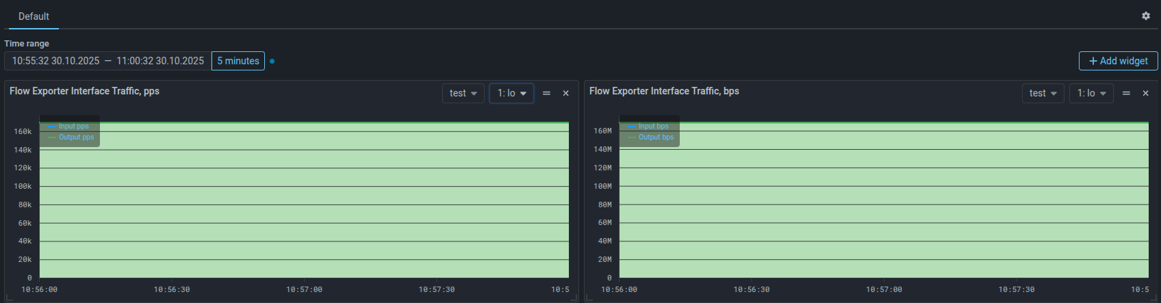 Overview. Widgets for traffic on exporter interfaces based on SNMP data have been added.