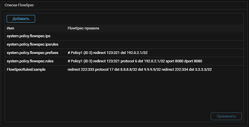 FlowSpec-правил system.policy.flowspec.blackhole.rules,