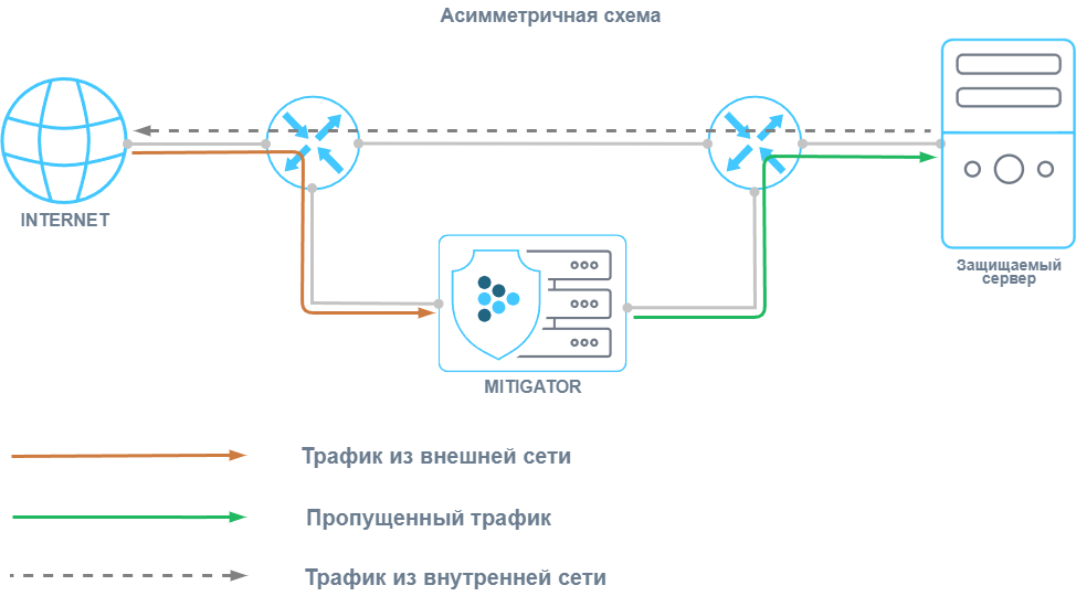 MITIGATOR может работать при симметричной и асимметричной маршрутизации трафика.